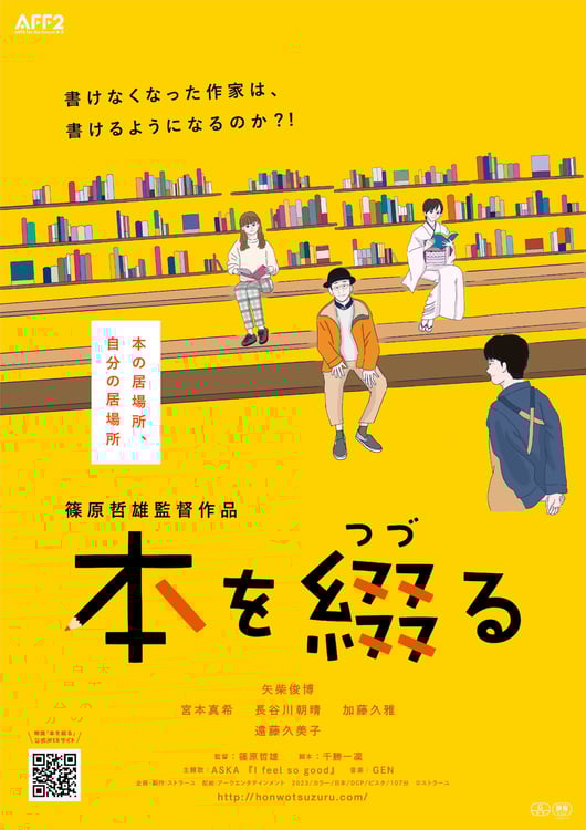 「本を綴る」は小説を書けなくなったベストセラー作家・一ノ関哲弘が、古書の中にかつての持ち主が出せずにいた手紙を見つけ、その手紙を届ける旅に出るロードムービー。那須塩原市図書館みるる、京都・恵文社、香川の移動図書館を舞台に製作された。一ノ関役に矢柴俊博、ヒロイン役に遠藤久美子、宮本真希がキャスティングされた。また旧友役として長谷川朝晴が出演するほか、加藤久雅、川岡大次郎、石川恋らが出演する。本作の監督を務めるのは篠原哲雄。企画・脚本は千勝一凜、音楽はGENが担当した。