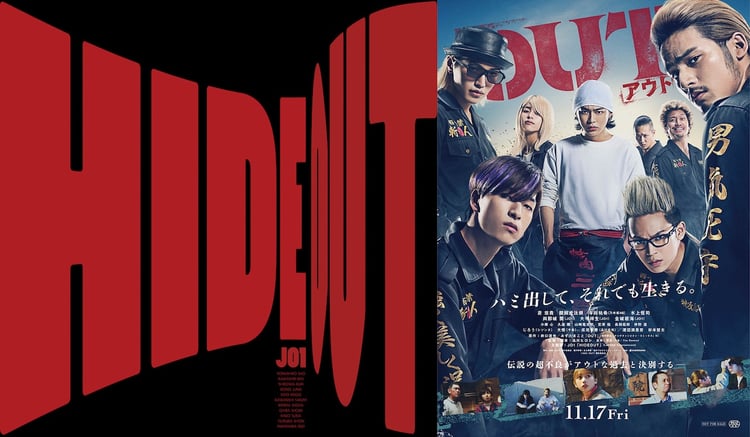 11月8日に配信リリースされた「HIDEOUT」はアウトローな映画の世界観とマッチした、聴く人の背中を押してくれるような応援ソング。コラボムービーはキャストや品川監督が出席した完成披露試写会の舞台裏や、「OUT」の本編映像で構成されている。この動画について品川監督は「完成披露試写会の舞台裏や本編映像をふんだんに使った映画OUT版MVです。ぜひ格好いいので見てください」とコメントしている。