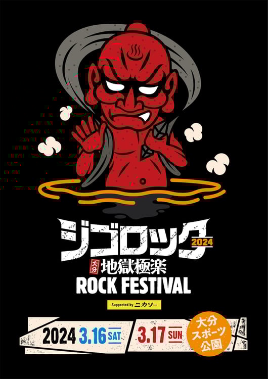 大分県初の大型野外フェス「ジゴロック2024~大分“地獄極楽”ROCK FESTIVAL~supported by ニカソー」が、2024年3月16日と17日に大分・大分スポーツ公園にて開催される。