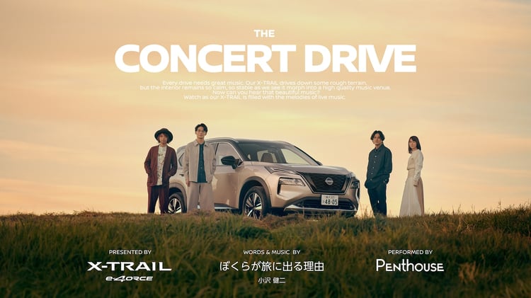 この動画でPenthouseは小沢健二の楽曲「ぼくらが旅に出る理由」をカバー。通常のオフロード走行では揺れて実現できないであろう車内での生演奏を可能にした「エクストレイル」の静粛性や走行安定性、そしてなめらかな走りを感じられるライブ演奏動画となっている。