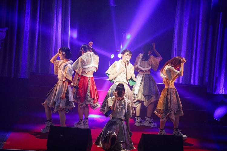 ステージにはシャンデリアや、西洋風の柱、真っ赤なカーペット、ステンドグラス風の装飾品などを配した豪華なセットが組まれ、豆粒を出迎える。豆柴は過去に囚われず前進していく気持ちを歌う「MUST GO」で勇ましくライブをスタートさせ、続けて「FLASH」「マラマーラ」というアッパーチューンを畳みかけた。場内は序盤から一気に熱気が高まり、フロアではペンライトのカラフルな光が盛大に揺れる。そんな中、メンバーはこの1年の成果を示すかのように気合い十分のパフォーマンスを展開した。またこの日のライブの模様は会場に足を運べないファンのために生配信された。ミユキは笑顔を見せながら、観客のみならず、配信で参加しているファンにも「今日は1日楽しんでいってください!」と呼びかけた。