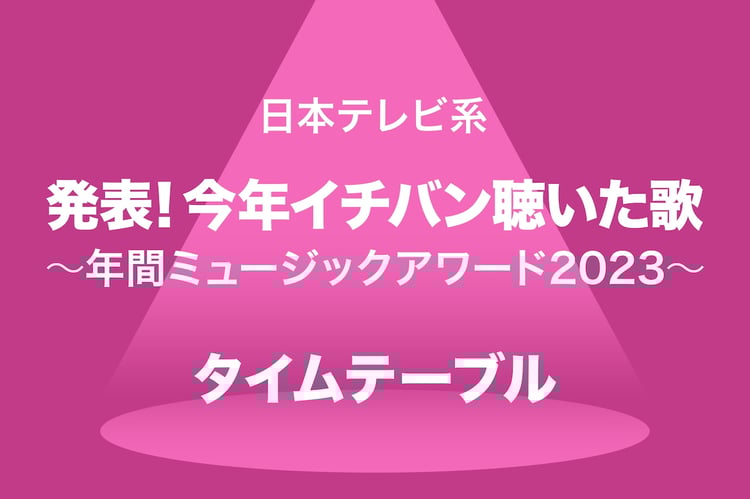 明日12月27日に放送される日本テレビ系の音楽特番「発表!今年イチバン聴いた歌~年間ミュージックアワード2023~」のタイムテーブルが発表された。
