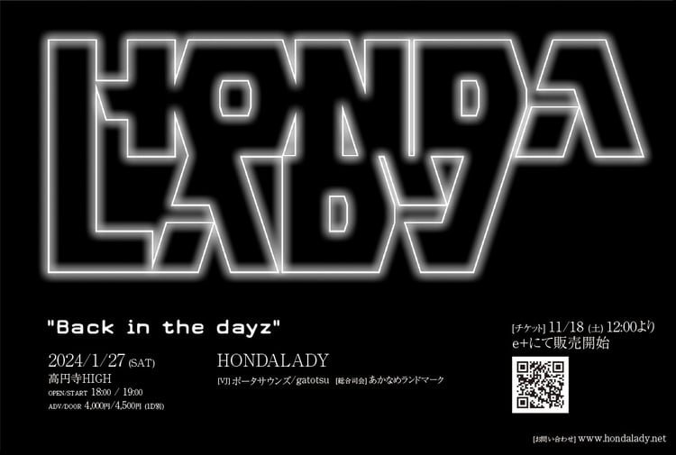 HONDALADYが活動を再開。1月27日に東京・KOENJI HIGHにてワンマンライブ「Back in the dayz」を開催する。