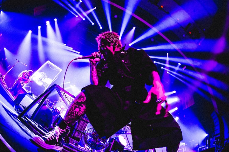 「俺たちが見えてるか?」「もっと噛み付いてこい!」。獣のようにオーディエンスの声を求め、グロウル混じりの声で絶唱する京と、その横で躍動しながら激しくギターをかき鳴らすミヤとantz。その一歩うしろで高松は重厚なグルーヴを生み出し、4人の手綱を引くようにyukihiroが冷徹にリズムを刻む。胸を締め付けるような緊迫感のあるパフォーマンスが続くが、ライブ後半に差しかかった頃、「come to a screaming halt」でふと空気が緩む時間も。立ち上るスモークに、天井から雪のように降り注ぐスモークバブル。幻想的な演出とシンクロするように、心を乱すような甘く切ない京の歌、静謐なインダストリアルサウンドがオーディエンスを陶酔させた。