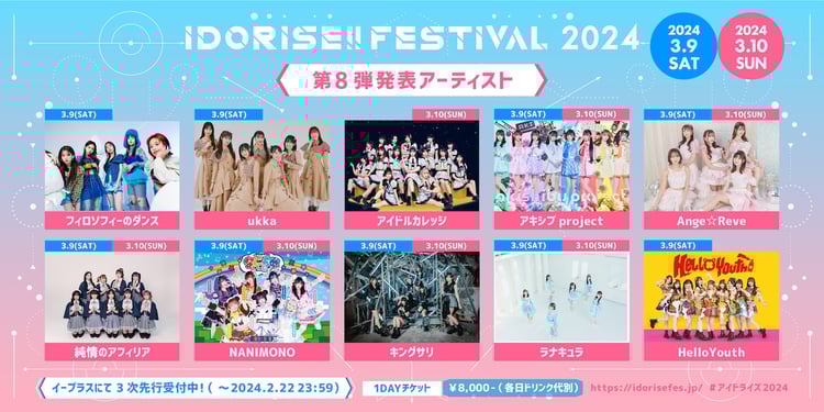 3月9、10日に東京・渋谷のライブハウスで開催されるサーキットイベント「IDORISE!! FESTIVAL 2024」の出演アーティスト第8弾が発表された。