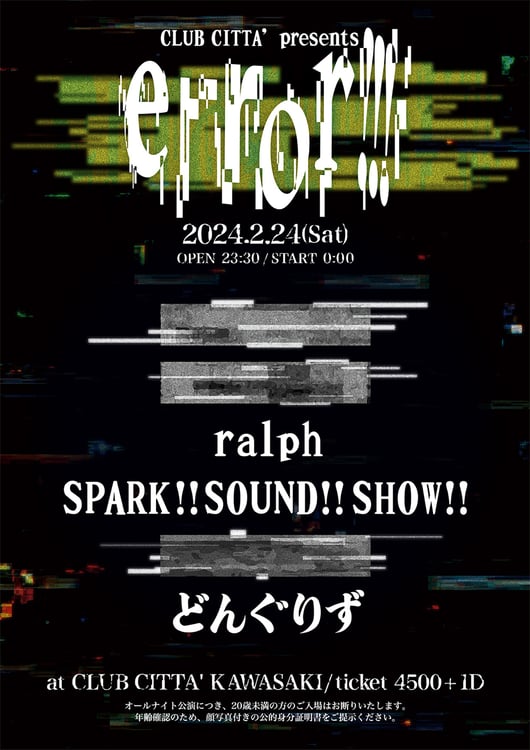 2月24日に神奈川・CLUB CITTA'でオールナイトライブイベント「error!!!」が開催される。