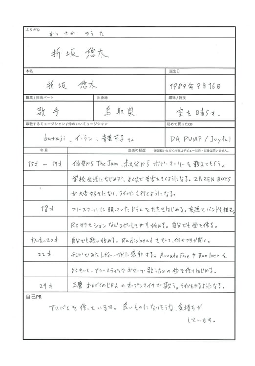 アーティストの音楽遍歴を紐解くことで、音楽を探求することの面白さや、アーティストの新たな魅力を浮き彫りにするこの企画。今回はシンガーソングライターとして独自の境地を開拓し、現在は新作を制作中という折坂悠太の音楽遍歴に迫った。