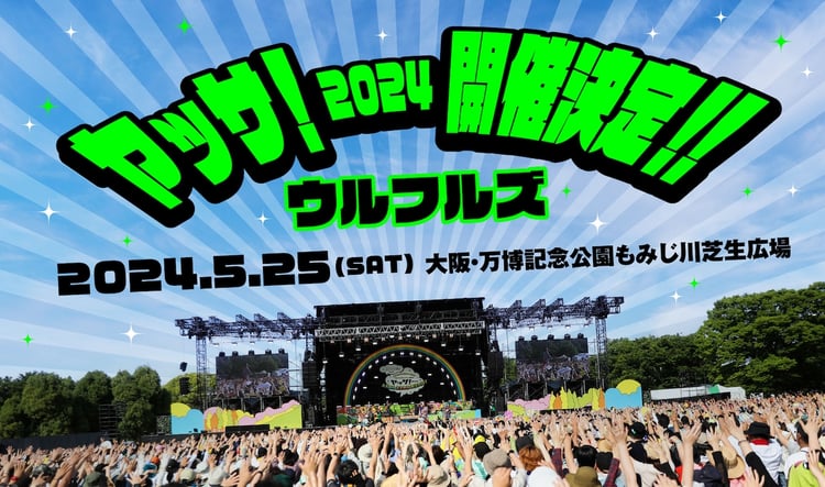 ウルフルズの野外ワンマンライブ「ヤッサ!2026」が2026年5月30日に大阪・万博記念公園もみじ川芝生広場で開催される。