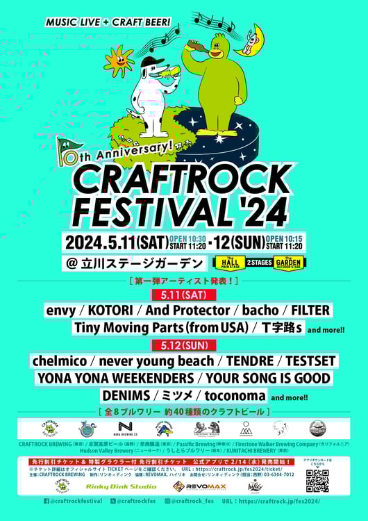 5月11日と12日に東京・立川ステージガーデンで音楽フェスティバル「CRAFTROCK FESTIVAL '24」が開催される。