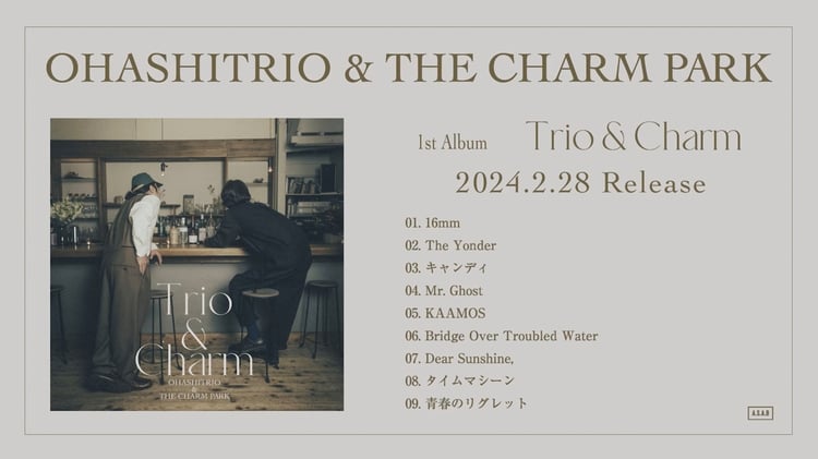 2月28日にリリースされる大橋トリオ & THE CHARM PARKの1stアルバム「Trio & Charm」の収録曲「The Yonder」「青春のリグレット」の先行配信がスタートした。