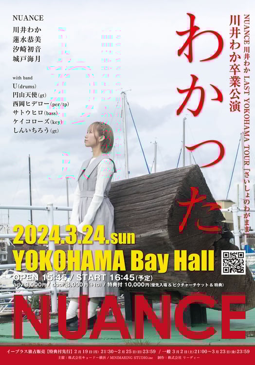 グループ結成時からのオリジナルメンバーであるリーダー川井わかが、3月24日をもって卒業することが決定しているNUANCE。現在、彼女たちは横浜のライブ会場を巡るツアー「NUANCE川井わか LAST YOKOHAMA TOUR『さいしょのわがまま』」を開催中で、Yokohama Bay Hall公演はそのファイナルとして行われる。