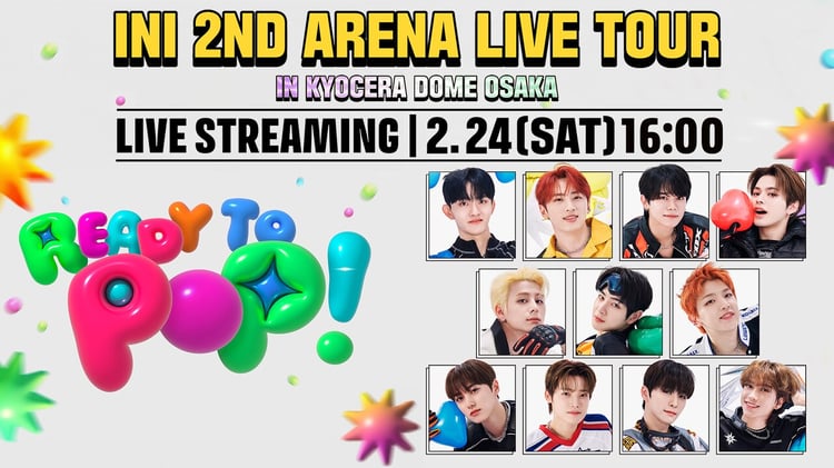 INIが2月24、25日に大阪・京セラドーム大阪で行う初の単独ドーム公演「INI 2ND ARENA LIVE TOUR [READY TO POP!] IN KYOCERA DOME OSAKA」のうち、1日目の模様がLeminoで生配信される。