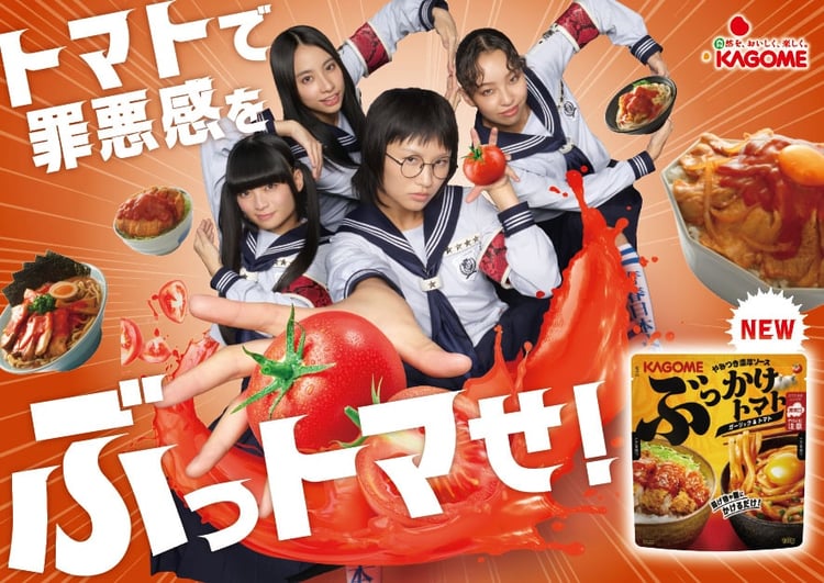 本日2月27日に発売されるカゴメ株式会社の新商品「ぶっかけトマト ガーリック&トマト」および定番商品「カゴメトマトケチャップ」の広告キャラクターに、新しい学校のリーダーズが就任。4人が出演する新テレビCM「はみ出していく」編と「覚醒」編が、本日よりオンエアされる。