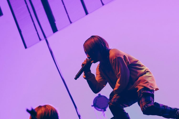 中盤はそんなsyudouの歌唱力を堪能できる楽曲が多く披露された。彼はミドルバラードの「灯火」を情感たっぷりに歌い上げ、劣等感や飾らない思いを歌詞に乗せた「恥さらし」をパフォーマンス。さらに2月に配信リリースされた最新曲「命綱」を、この日お披露目となったミュージックビデオの映像を背負って歌唱。繊細な感情を表現し、ボーカリストとしての技量を提示した。その後エネルギッシュな「インザバックルーム」を経て、本編ラストに披露されたのは「ギャンブル」。フロアには銀テープが舞い、syudouは力強い歌声で観客を熱狂させた。