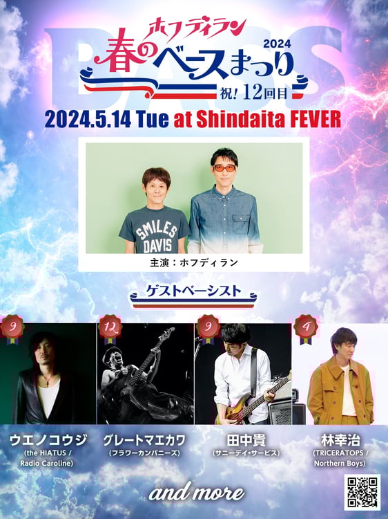 5月14日に東京・新代田FEVERで開催されるホフディラン主催のライブイベント「春のベースまつり2024」のゲストアーティスト第2弾が発表された。