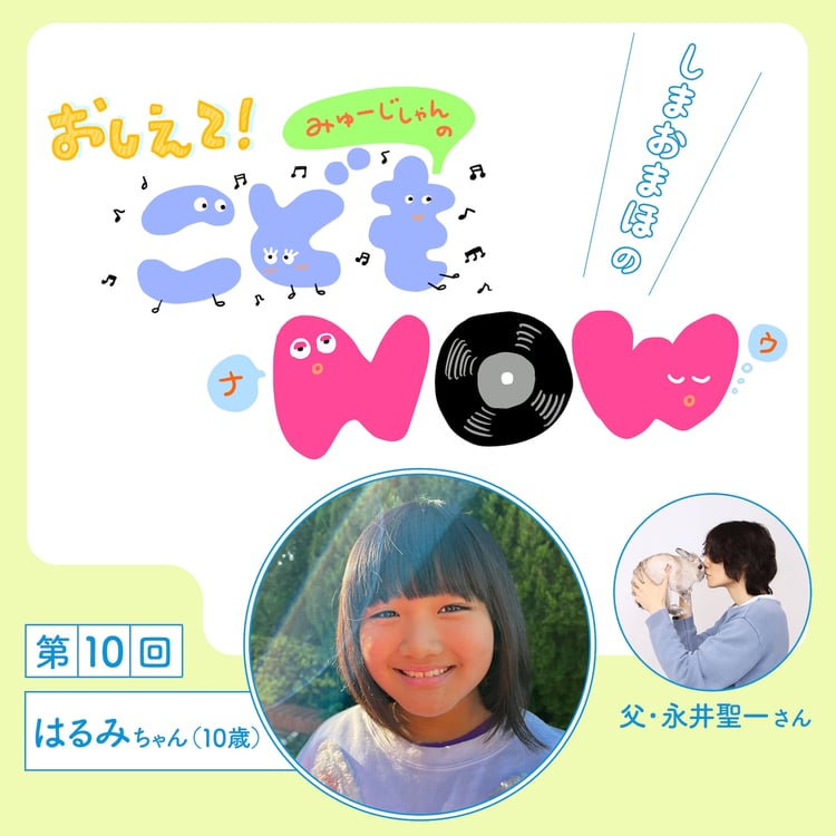 作家 / イラストレーターのしまおまほさんがミュージシャンのお子さんにインタビューする連載「しまおまほの おしえて!みゅーじしゃんのこどもNOW」。ミュージシャンが子育てについて語るインタビュー記事は世の中に数あれど、当の子供たちはミュージシャンという仕事を持つ親の存在をどのように思っているのでしょう? 自身もお子さんを持つしまおさんが、子供たちへのインタビューを通してパパママミュージシャンの日常の姿に迫ります。第10回となる今回のゲストは相対性理論、TESTSET、QUBITのメンバーであり、さまざまなアーティストのライブやレコーディングでサポートミュージシャンとしても活躍するギタリスト / 作曲家の永井聖一さんの娘・はるみちゃん(10歳)。お父さんの聖一さんと一緒に、モデルとして活躍するお母さんの山口尚美さん、弟のせいたろうくん(7歳)も取材に参加してくれました。