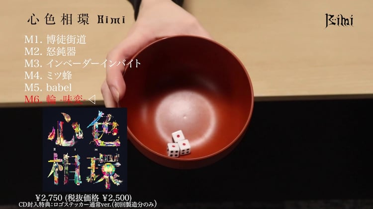 「心色相環」は、「森羅万象、あらゆる物事やこの世の一切において、すべては循環の原理により保たれ形成されている」という思想が表現された作品。公開されたトレイラーでは、Bimiの座右の銘“Life is Gamble”やEPの収録曲「博徒街道」にちなんで、Bimiがチンチロに興じている。
