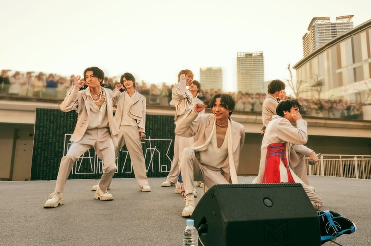 2曲を終えると、7人はぐるりと自分たちの周りを囲む観測者に挨拶をし「すごいなあ」と言葉を漏らす。この会場は、げんじぶメンバーがデビュー前から何度もイベントを行い精進してきた思い入れのある場所でもあり、長野凌大が「毎週のようにライブしてたもんね」と懐かしそうにつぶやくと、小泉光咲も「改名前からお世話になっている場所だもんね」と応じる。そして吉澤は、当時とはひと味違う超満員の景色に「どこを見ても皆さんがいる。本当に幸せな状況です」と、喜びの心境をあらわにした。