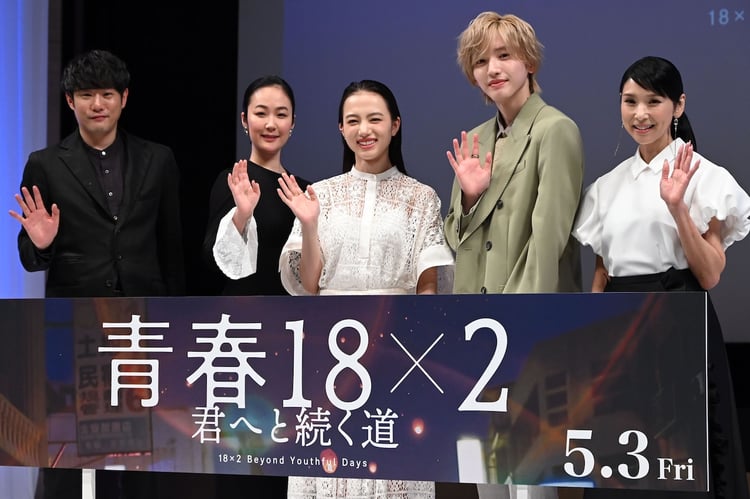 5月3日公開の映画「青春18×2 君へと続く道」のジャパンプレミアが本日3月18日に東京・有楽町朝日ホールで行われ、清原果耶、道枝駿佑(なにわ男子)、黒木華、黒木瞳、藤井道人監督が登壇した。