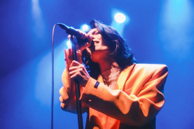 開演時刻を迎えると、ステージ上の巨大なスクリーンにオープニング映像が流れ、大きな歓声を浴びながら離婚伝説の2人が登場。別府によるギターのカッティングを合図に「愛が一層メロウ」でライブが始まると、その歓声はより一層大きくなった。満員のフロアは大きくうねり、サビでは合唱が巻き起こるなど、待望の初ワンマンの幕開けに、オーディエンスの高揚感は冒頭から高まり切った。その後も彼らは「あらわれないで」「スパンコールの女」などを続々と演奏し、松田は時にクールに時にエモーショナルに歌声を響かせる。「追憶のフロマージュ」では別府がギターを激しく歪ませ、観客の視線を釘付けにした。
