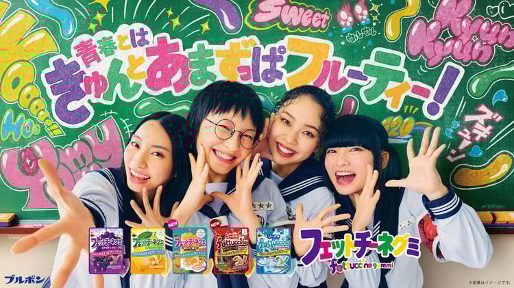 またXやInstagramでハッシュタグ「#新しい青春のポーズみんなでつくる広告」を付けて写真を投稿すると、「フェットチーネグミ」の交通広告にて新しい学校のリーダーズと共演できるキャンペーンがスタートする。また「新しい学校のリーダーズ×青春」をテーマにしたオリジナルグッズが当たる「#新しい青春はきゅんとあまずっぱフルーティーキャンペーン」も行われる。