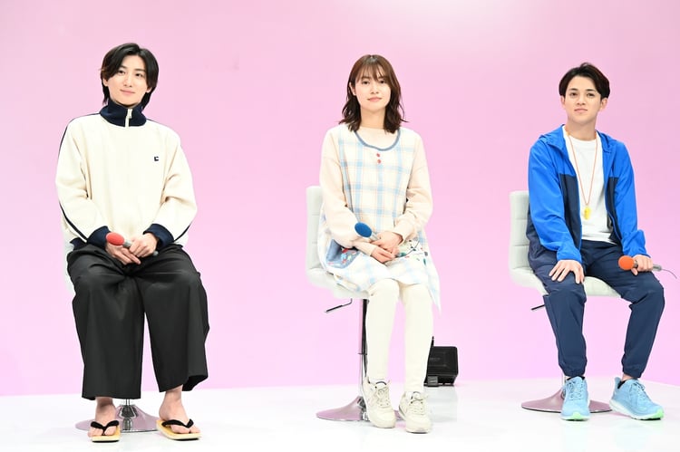 プライベートで京本と仲のいい宮近は渋谷くんについて「京本さんの面影はまったく感じないので、さすがだなと思います。京本大我が経験した“キュン”を投影した渋谷くんが観られるのですごく楽しみです」とコメント。すると京本「ヤバい見方ですよね。新しいですけど」とすぐさまリアクションした。多くの子供たちも出演しているこのドラマ。田辺が宮近について「ボールを持ってたときの人気ぶりはすごかったですよね」と視線を送ると、宮近本人は「ボールが転がっていったら子供たちがそっちに行ったので、ボールが鍵かなと思ってます」と切ない表情を見せた。