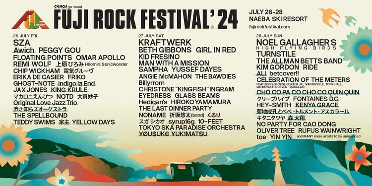 Kraftwerk / ベス・ギボンズ / ガール・イン・レッド / KID FRESINO / MAN WITH A MISSION / サンファ / ユセフ・デイズ / アンジー・マクマホン / THE BAWDIES / Billyrrom / クリストーン・“キングフィッシュ”・イングラム / アイドレス / Glass Beams / Hedigan's / Hiroko Yamamura / The Last Dinner Party / ノーネーム / 折坂悠太(band) / スガシカオ / 10-FEET / 東京スカパラダイスオーケストラ / くるり / syrup16g / ¥ØU$UK€ ¥UK1MAT$U / and more