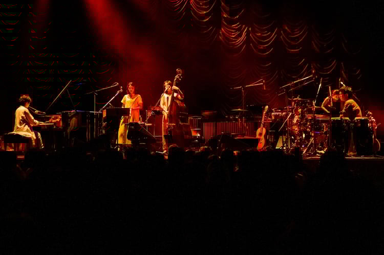ジャズシーンのホープとして期待される2人がポップスを表現するユニットとして2022年に始動したsoraya。それぞれソロプレイヤーとして活躍し、石川は昨年3月にヴァーヴ・レーベルからソロシンガーとしてデビューするなど活動の場を広げながら、2人はsorayaでの楽曲制作やライブを重ね、3月13日に1stアルバム「soraya」を発表した。ワンマンライブにはアルバム楽曲のレコーディングにも参加している加納奈実(Sax, Flute)、吉野智子(Mallets, Perc)、KAN(Perc)がサポートメンバーとして参加。さらにアルバムのボーカル録音とミックスを担当したエンジニア葛西敏彦がPAを務め、バンドが生で奏でる繊細なサウンドを極上の音響で届けた。