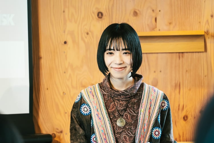 アユニ・D(PEDRO、ex. BiSH)が本日4月14日に東京・下北沢BONUS TRACK GALLERYで開催中のFRISKによるプロジェクト「#あの頃のジブンに届けたいコトバ」の特別展示イベント内のトークショーに登壇した。