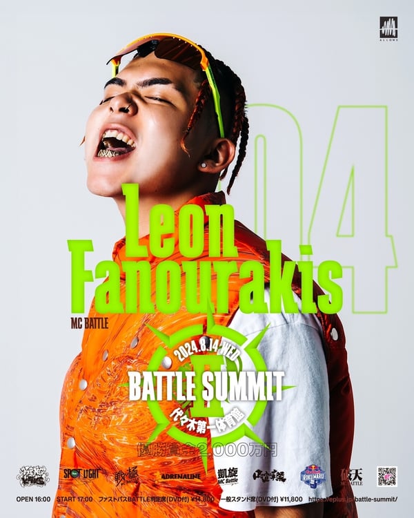 8月14日に東京・国立代々木競技場第一体育館で開催されるMCバトルイベント「BATTLE SUMMIT II」にLeon Fanourakisが出場する。