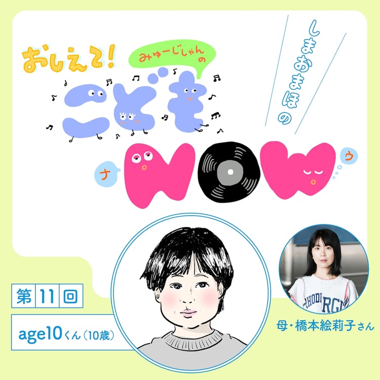 作家 / イラストレーターのしまおまほさんがミュージシャンのお子さんにインタビューする連載「しまおまほの おしえて!みゅーじしゃんのこどもNOW」。ミュージシャンが子育てについて語るインタビュー記事は世の中に数あれど、当の子供たちはミュージシャンという仕事を持つ親の存在をどのように思っているのでしょう? 自身もお子さんを持つしまおさんが、子供たちへのインタビューを通してパパママミュージシャンの日常の姿に迫ります。第11回となる今回のゲストは2年4カ月ぶりとなるニューアルバム「街よ街よ」を完成させた橋本絵莉子さんの息子、age10(エイジテン)くん(10歳)。落ち着いた雰囲気のあるage10くんですが、最近ハマっているという消しピンの話題になると一気にテンションが上昇。独自の進化を遂げる消しピンの世界について熱く語ってくれました。