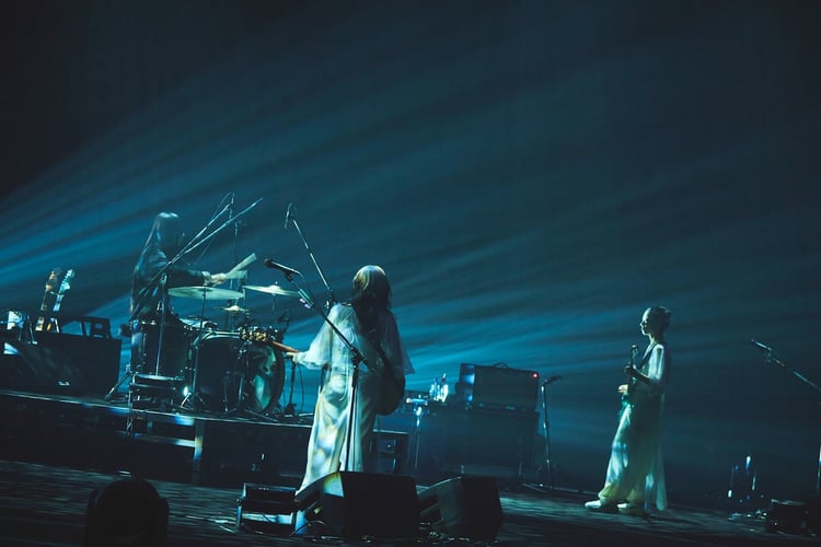 場内を彩る美しいライティングや、ダイナミックなカメラワークなど巨大モニターを用いた映像演出が目を引いた本公演。その中でぼんやりと灯る照明のもと披露された「若者たち」もハイライトの1つだったと言えるだろう。音楽ナタリーが昨年行った最新アルバム「12 hugs (like butterflies)」のインタビューで、河西ゆりか(B)は「大きなステージに立っても初心を忘れないように、羊文学としての柱をしっかり立てたい」と本公演に臨む心境を語っており、インディーズ期の楽曲である「若者たち」をこの大舞台で3人だけでじっくりと演奏する姿からは、河西の言うバンドの“初心”を十分に感じ取ることができた。