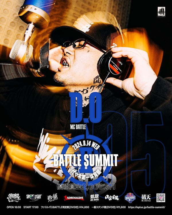 8月14日に東京・国立代々木競技場第一体育館で開催されるMCバトルイベント「BATTLE SUMMIT II」にD.Oが出場する。