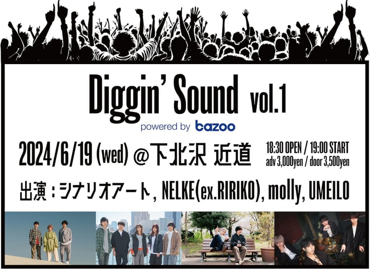 このイベントにはシナリオアート、NELKE(ex. RIRIKO)の出演がすでに決定していたが、新たにUMEILO、mollyが追加され、全4組の出演が決定した。追加アーティストのUMEILOは2017年に結成され、2020年に活動を休止するも、2023年12月にオリジナルメンバーでの再結成を発表したロックバンド。今年2月に地元北海道札幌市のライブハウス・SPiCEで行ったワンマンライブのチケットを完売させ、3月の「見放題 東京2024」に出演した際には東京・新宿LOFTで入場規制がかかった。mollyは愛知・名古屋のライブハウスを中心に活動するロックバンドで、繊細な歌声を武器にオーディエンスを惹き込むライブで人気を博している。チケットは楽天チケットで販売中。