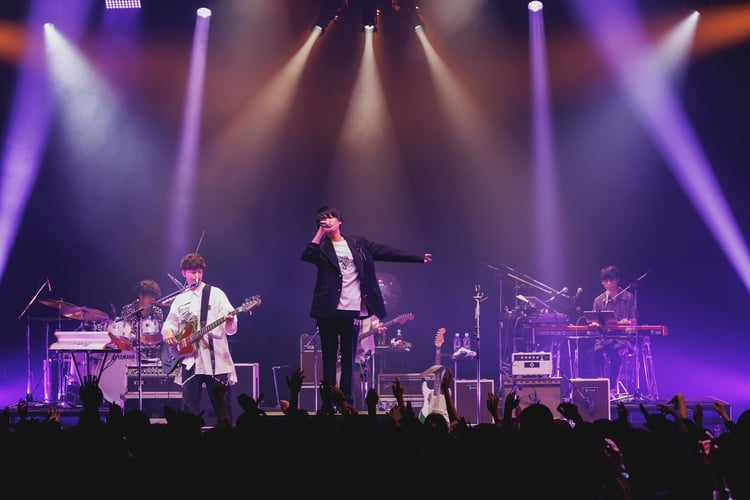 サポートメンバーが再びステージに戻り、ライブ終盤はバンド編成でのパフォーマンスを再開。「Halloween Knight」の艷やかなサウンドを届けたあと、「あれ」の間奏では斎藤と須藤、粂がお立ち台に上がってのパフォーマンスを繰り広げ、フロアの大歓声を浴びた。山本が奏でるエモーショナルなピアノイントロから始まった「スプレー」では、5人のたおやかなアンサンブルにオーディエンスが心地よさそうに体を揺らす。本編ラストは「Vivid Noise」で締めくくられた。