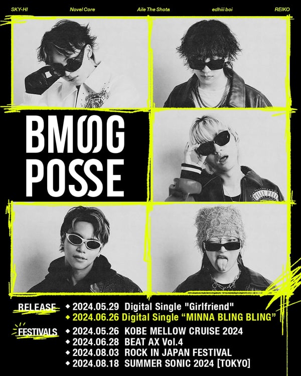 BMSGに所属するソロアーティストであるSKY-HI、Novel Core、Aile The Shota、edhiii boi、REIKOが集結したBMSG POSSEの第2弾シングル「MINNA BLING BLING」が、6月26日に配信リリースされる。