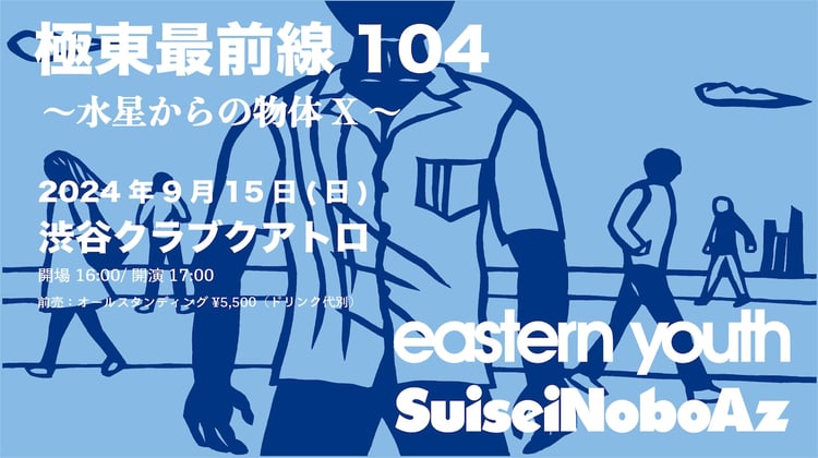 eastern youthとSuiseiNoboAzのツーマンライブ「極東最前線104 ~水星からの物体X~」が、9月15日に東京・渋谷CLUB QUATTROで開催される。