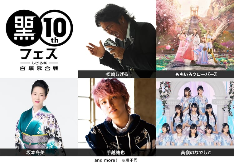2015年より毎年“クロの日”“松崎しげるの日”である9月6日に行われている「黒フェス」。10回目の開催となる今年の公演には、ももいろクローバーZ、坂本冬美、手越祐也、高嶺のなでしこが出演する。出演者は今後も追加される。なお、会場には毎度おなじみの茂出木シェフ率いる「日本橋たいめいけん」が出店する。