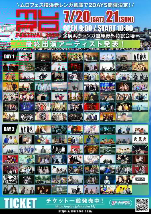 7月20、21日に神奈川・横浜赤レンガ倉庫 野外特設会場で開催される音楽フェス「MURO FESTIVAL 2024」の最終出演アーティストが発表された。