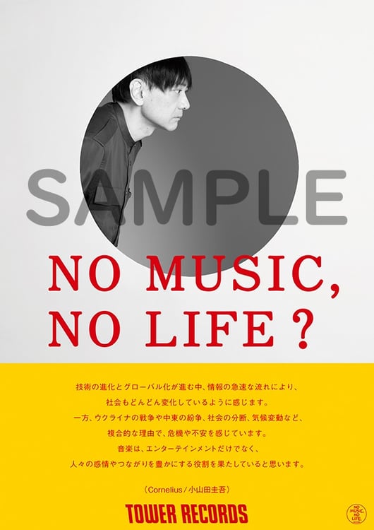 小山田圭吾(Cornelius)がタワーレコードの意見広告ポスターシリーズ「NO MUSIC, NO LIFE.」に登場する。
