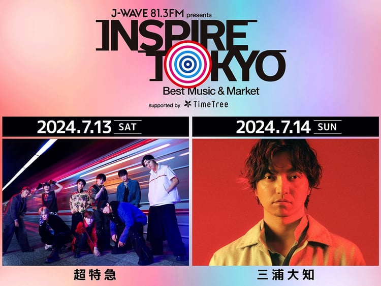 7月13、14、15日に東京・国立代々木競技場第一体育館と代々木公園イベント広場・ケヤキ並木で開催されるJ-WAVE主催の都市型カルチャーフェス「J-WAVE presents INSPIRE TOKYO 2024 -Best Music & Market-」に超特急、三浦大知が出演する。