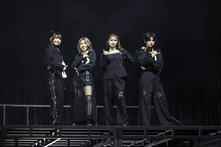 この曲は6月4日に配信リリースされたばかりの新曲で、英語圏で親しまれる数え歌「Eeny, Meeny, Miny, Moe」がモチーフ。一糸乱れぬダンスを披露するAMEFURASSHIとダンサーに客席から盛大な歓声が送られた。スパンコールがきらめく新衣装を身にまとった4人は、その後も立体的なステージセットを舞台にダンサーと共演。「Fly Out」「DROP DROP」などのパワフルな楽曲がいつも以上の迫力をたたえて披露された。