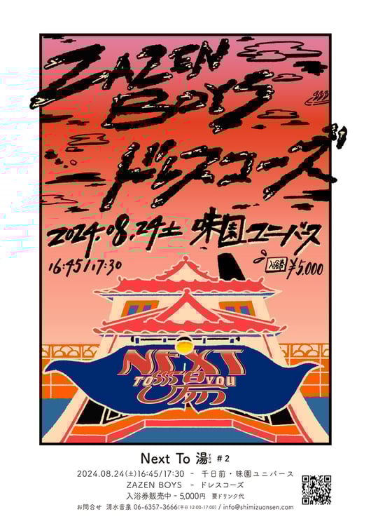 関西のコンサートプロモーター清水音泉によるライブイベント「Next To 湯(You)#2」が8月24日に大阪・ユニバースで開催される。