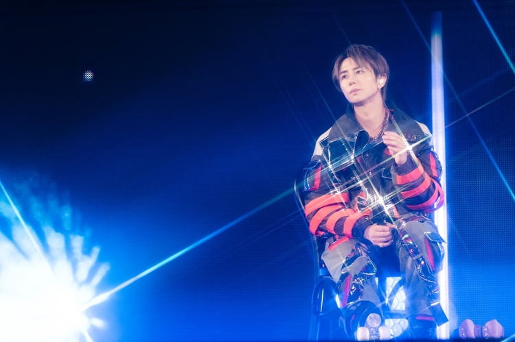 開演後、SFを想起させるオープニング映像が流れるとともに、ムービングステージに鎮座していた銀色の卵が虹色に発光。宝石のように輝いた卵がパリパリと音を立てて割れ、中から北山が姿を現すと会場は大歓声に包まれた。「NE:Ø era」でライブが始まると、北山を乗せたムービングステージは前後に動き、会場後方のオーディエンスにも接近。炎や花火を使ったアリーナ会場ならではの演出と、アリーナとは思えない距離感の近さを両立してオーディエンスを楽しませた。