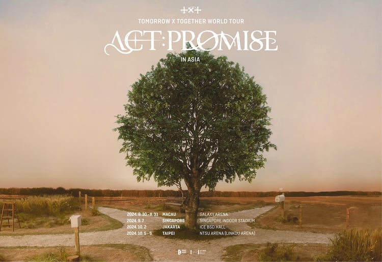 ワールドツアー「ACT : PROMISE」を5月に韓国・ソウルでスタートさせたのち、アメリカに渡り全11公演で14万人を動員したTOMORROW X TOGETHER。7月から9月までは日本のドーム4会場を巡る。このたび追加されたアジアツアーではマカオ、シンガポール、ジャカルタ、台北の4都市でライブが行われる。
