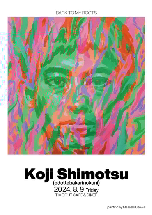 「BACK TO MY ROOTS」は、Time Out Cafe & Dinerと同じ建物にあるライブハウスLIQUIDROOMが企画するイベント。出演アーティストが自身の音楽的ルーツを掘り下げ、さまざまなスタイルでその音楽性を表現するという内容で、1年半ぶりの開催となる今回は下津に白羽の矢が立った。イベントのビジュアルは画家の小澤雅志が手がけた。