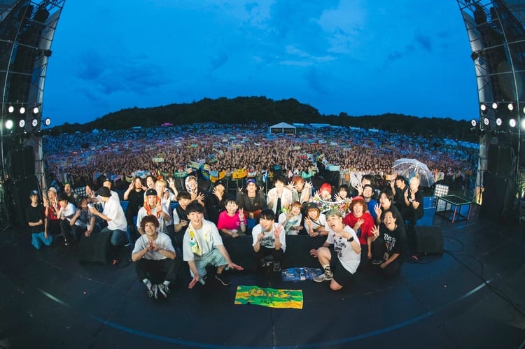 トリの04 Limited Sazabysは小雨の中で登場。アンコールで演奏することの多い「Buster call」を1曲目にセレクトすると、オーディエンスから歓声が上がる。GENがご機嫌な口調で「好きにやっちゃって!」と煽ったのを合図に、フォーリミは「fiction」「Alien」など攻撃的なラウドナンバーや怪しげな雰囲気をまとう曲を序盤に並べ、雨を吹き飛ばす勢いで激しいパフォーマンスを展開した。GENはこの日の出演者について、「世代もスタイルもバラバラだけど、みんなそれぞれ自分たちのスタイルを持っていて本当にカッコいいなと思いました」と感嘆。そして「6月になったんで、まだ暗くなってないこの景色が新鮮です」と周りを見渡した。