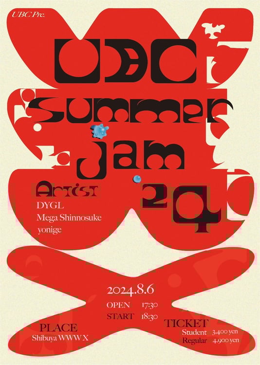 「UBC summer-jam」は早稲田大学公認の音楽イベント団体、早稲田大学UBCが主催を務める企画。これまで東京・新宿MARZ、上野恩賜公園野外ステージ、埼玉・所沢航空記念公園野外ステージなどさまざまな会場にて不定期で行われてきた。今回はDYGL、Mega Shinnosuke、yonigeの3組を出演者に迎える。チケットはLivePocketにて販売中。