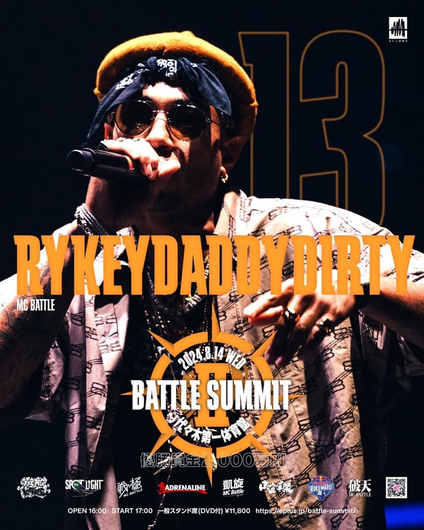 8月14日に東京・国立代々木競技場第一体育館で開催されるMCバトルイベント「BATTLE SUMMIT II」にRYKEYDADDYDIRTYが出場する。