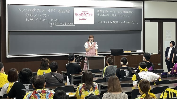 「ももクロ検定 vol.イドラ」は、5月17日に結成16周年を迎えたももクロの“軌跡”と“奇跡”を振り返る試験形式のイベント。予備試験と本試験の二段階で、予備試験は5月13日から6月3日までオンライン上にて無料で開催された。そして昨日、予備試験の高得点者上位517名のうち100名が東京会場の大正大学で、417名がオンラインで同時に本試験に挑戦した。